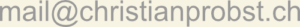 Contact Christian Probst Riedsortstrasse 296353 Weggis • Switzerland+41 78 307 44 32 Or right here:  Privacy and partnership are important. By ticking the box, you agree to the Privacy policy and to the Terms of service.